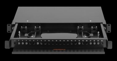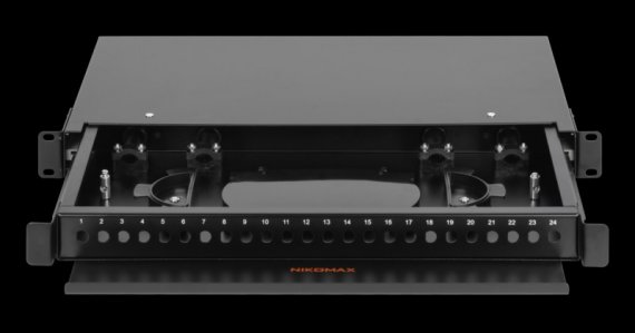 Nikomax Оптический кросс 19, 1U, до 24 FC/ST портов, выдвижной NMF-RP24FC-TS-P-1U-BK